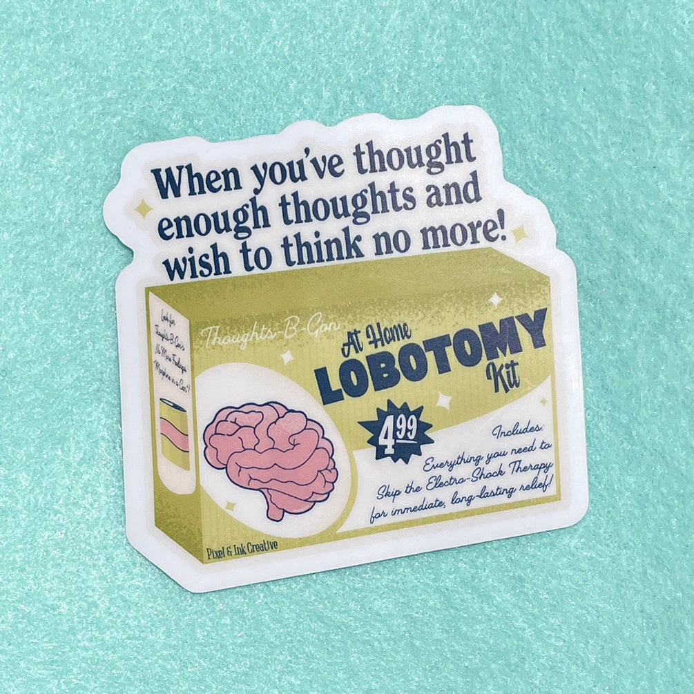 From the makers of “Thoughts-B-Gon” comes the solution no one asked for, but we all kind of get: the At-Home Lobotomy Kit sticker.