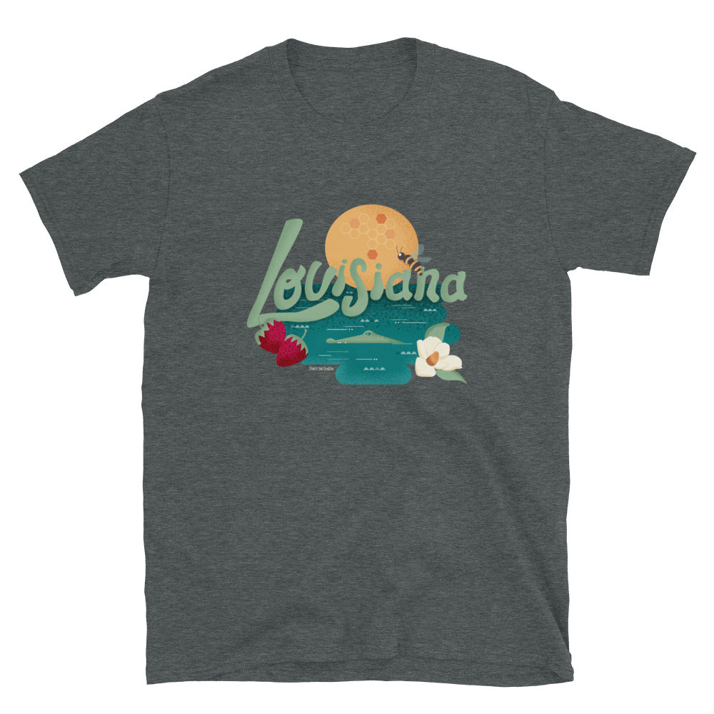 Show off your love of Louisiana by putting this shirt on your body! This super soft, unisex shirt features Louisiana's state fruit, insect, reptile, and flower. It's a playful and unique way to show off your state pride. Let everyone know you're from the Bayou State!