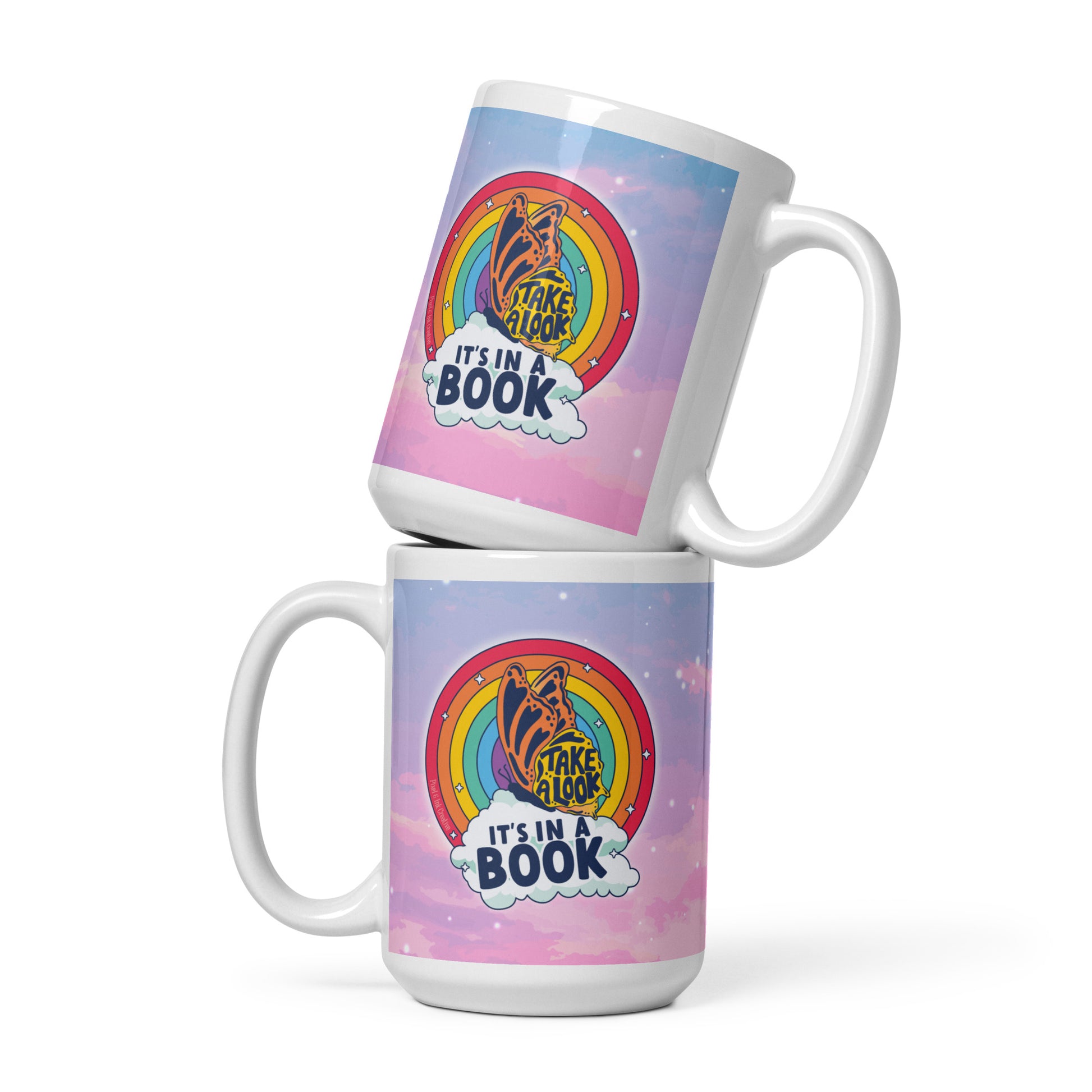 Start your day with a dose of nostalgia! The "It's in a Book Rainbow Reading" mug is a delightful tribute to the iconic 90s show, Reading Rainbow. Featuring the words "take a look, it's in a book," along with a vibrant rainbow and butterfly, this mug is perfect for elder millennials who grew up loving books and the joy of reading. Sip your favorite beverage and relive those magical moments of childhood while celebrating your love for literature.
