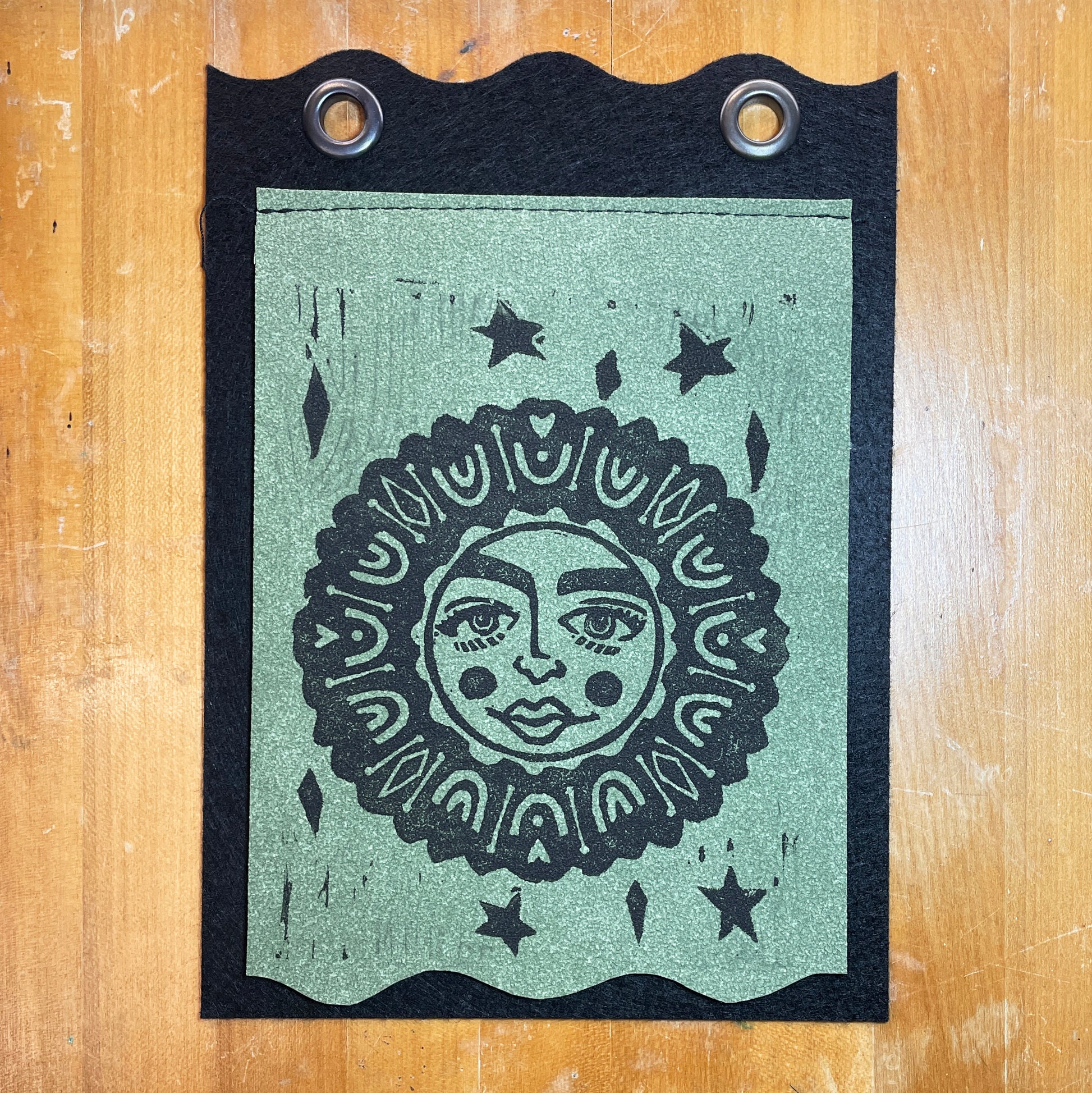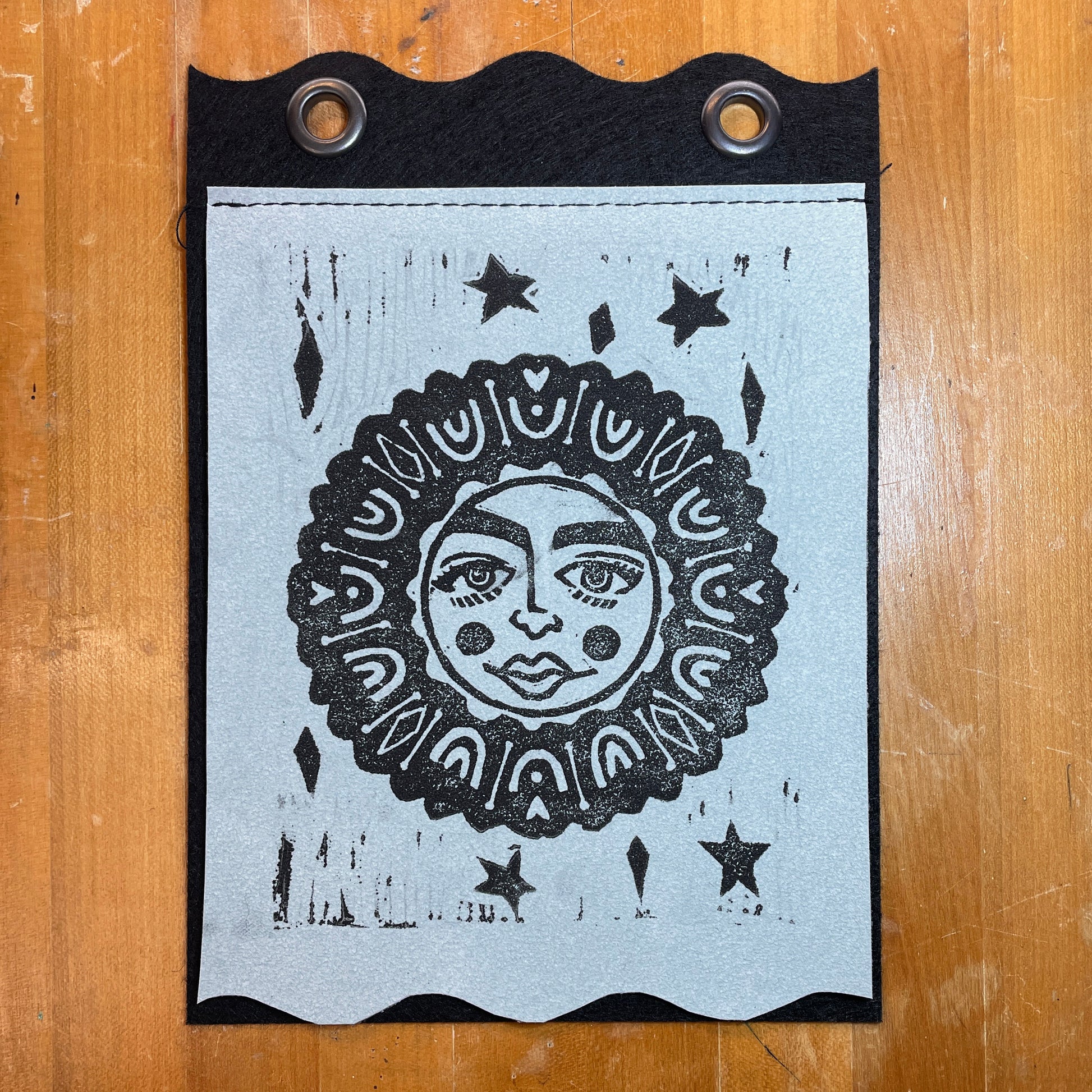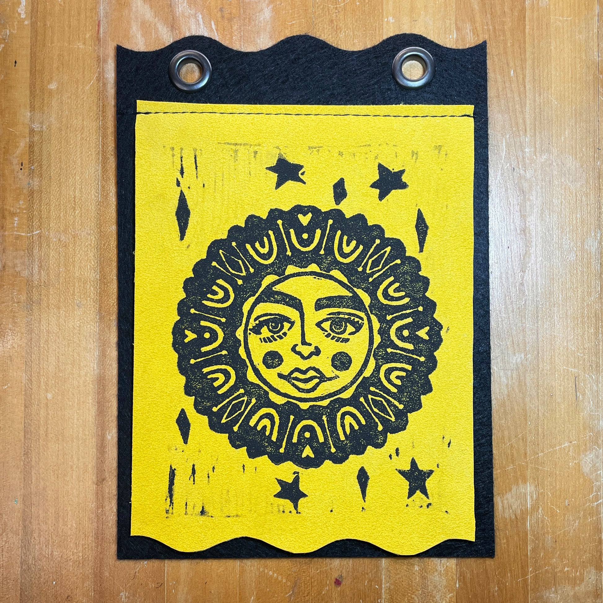 These fabric wall banners are handprinted and handsewn with ❤️! Printed from a hand-carved lino block using an manual press. Illustrated, designed, carved, printed and sewn by me!