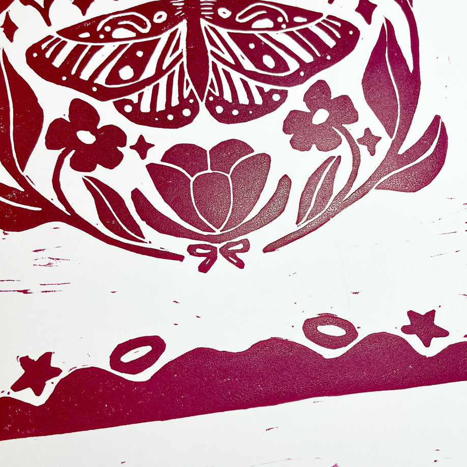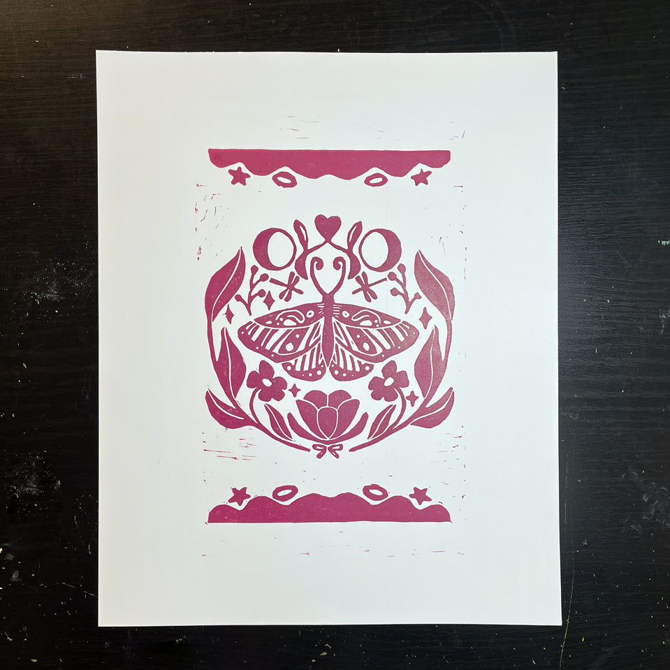 Moth Symmetry Linocut Print
