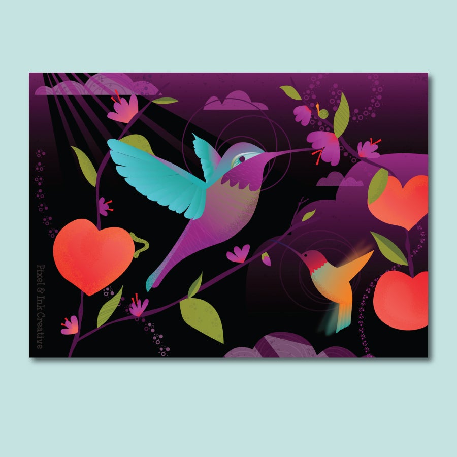 Brighten up any space with this pretty cool, colorful hummingbird print!