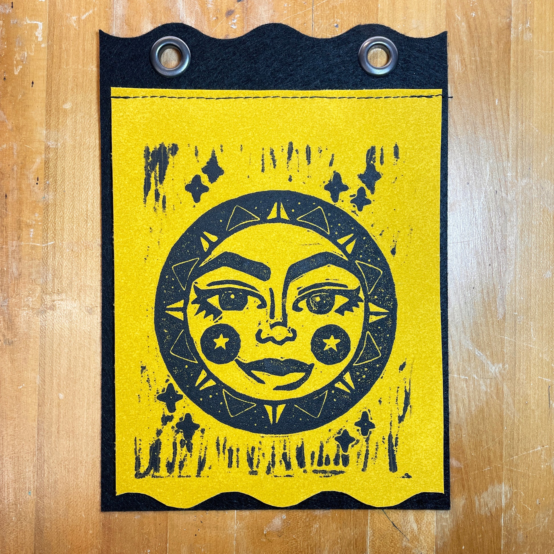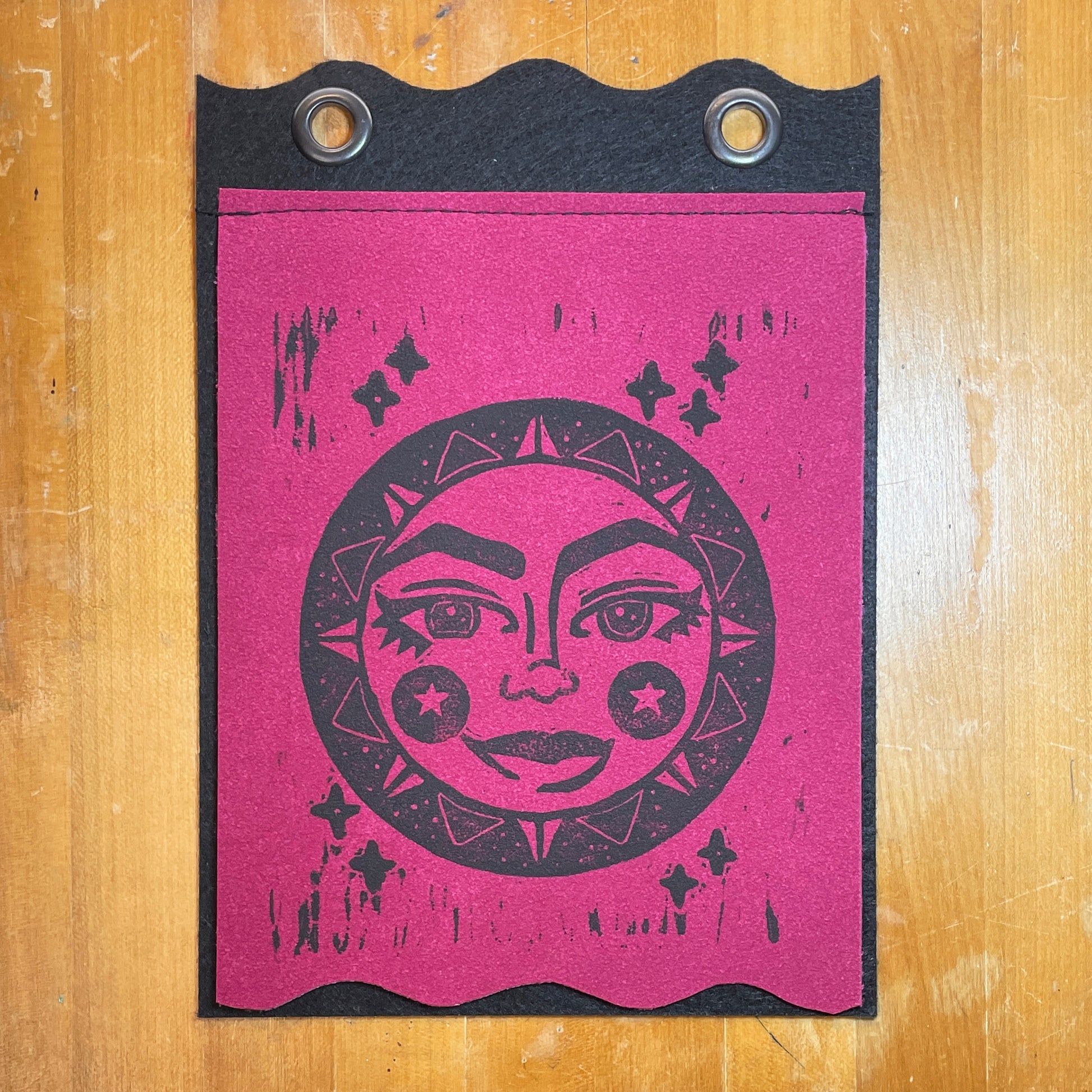 These fabric wall banners are handprinted and handsewn with ❤️! Printed from a hand-carved lino block using an manual press. Illustrated, designed, carved, printed and sewn by me!