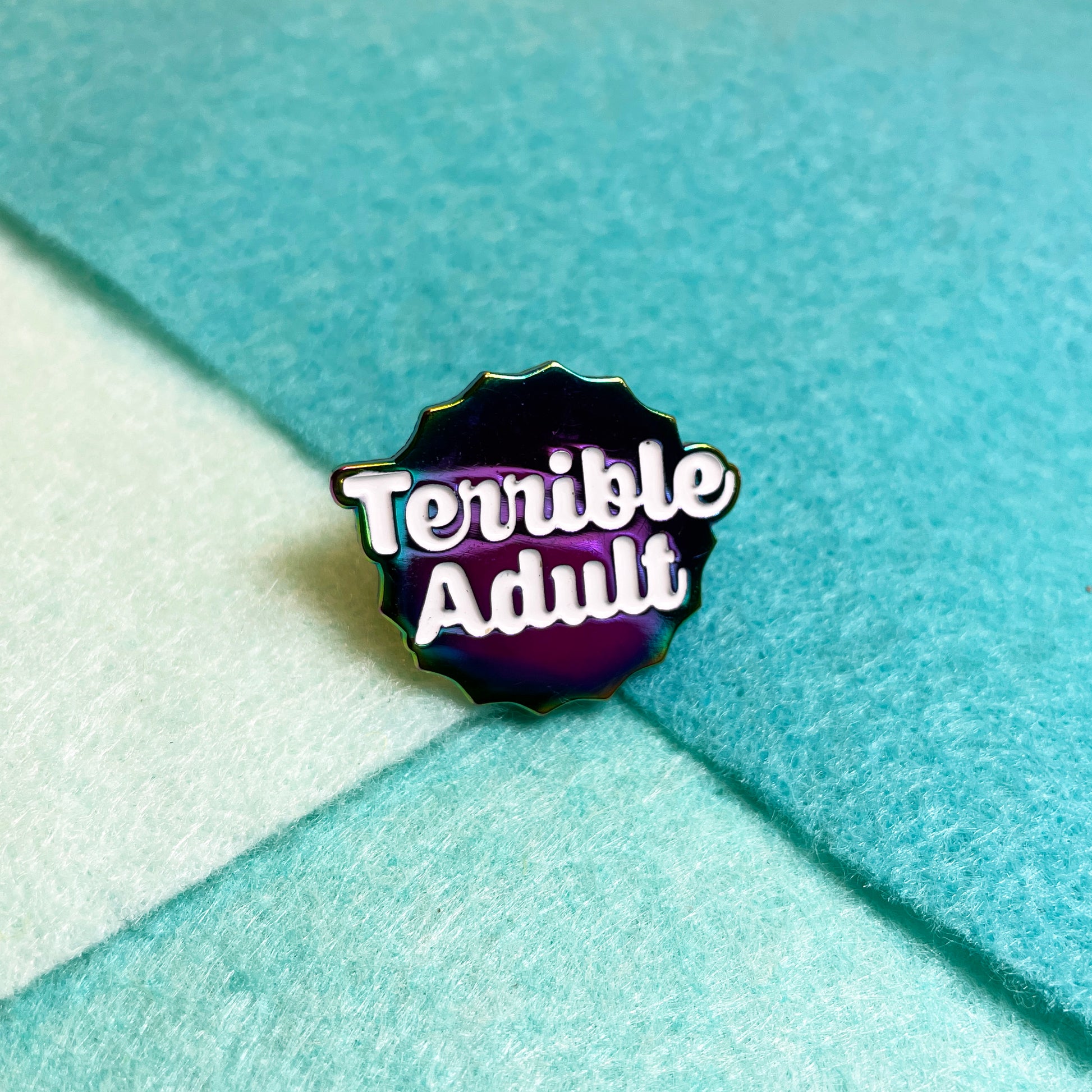You want seconds? ! Each of these enamel pins has minor flaws—perhaps a tiny smudge, a misplaced dot of enamel, or bubbles in the epoxy. These quirks are minor and add character without detracting from the pin's overall appeal. The flaws vary from pin to pin, and some blemishes are more noticeable than others.