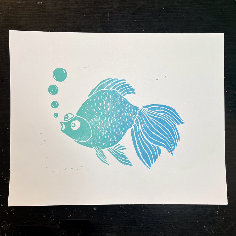 This is a hand-pressed block print. The design is first hand drawn, transferred to a block. I then carve it out, ink and press onto paper one at a time.