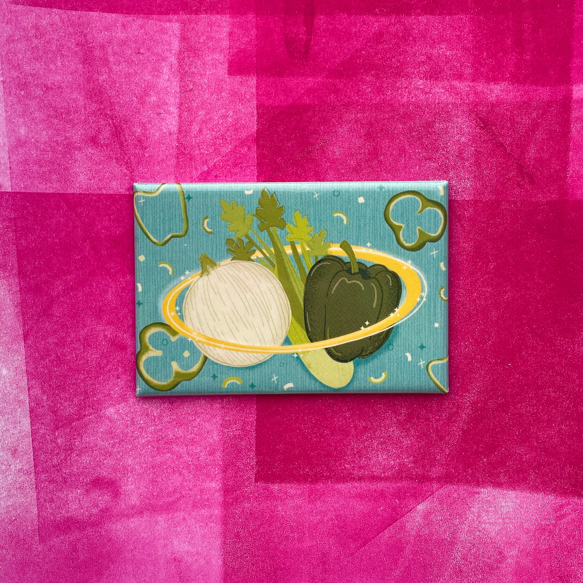 IYKYK! Bring the heart of Louisiana cooking to your kitchen with our Holy Trinity Magnet, featuring the classic trio of onion, green bell pepper, and celery.